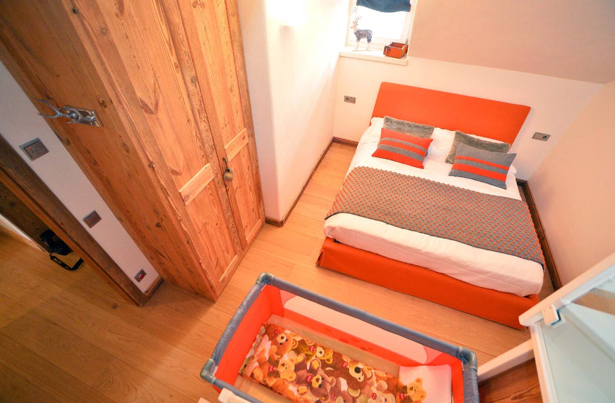 È composta da due comode camere matrimoniali, per un totale di 4 posti letto a cui se ne possono aggiungere altri 2 servendosi del confortevole divano letto situato nella zona benessere e di un nido ricavato nel sottotetto della seconda camera dove tre bambini o ragazzi ameranno addormentarsi; tre bagni di cui uno all’interno della stanza padronale completano la zona notte. La main room e’ composta da una splendida cucina inserita nel grande salone insieme ad un camino centrale ed un comodo tavolo da pranzo, il tutto ideale per concedersi piacevoli momenti in famiglia o tra amici.